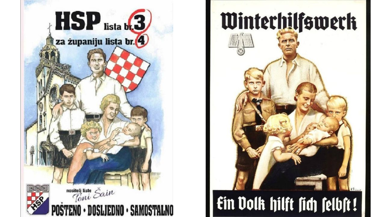 Pod motom “Pošteno, dosljedno, samostalno”, odlučili su se reklamirati na Korčuli. Iako HSP oduvijek koketira s ekstremnom desnicom, ovaj put su nadmašili sami sebe. Ideju za plakat na kojem se nalazi šesteročlana obitelj sa šahovnicom s poslovično prvim bijelim poljem, ukrali su od propagandnog postera koji je bio aktualan u vrijeme nacističke Njemačke. – piše Index