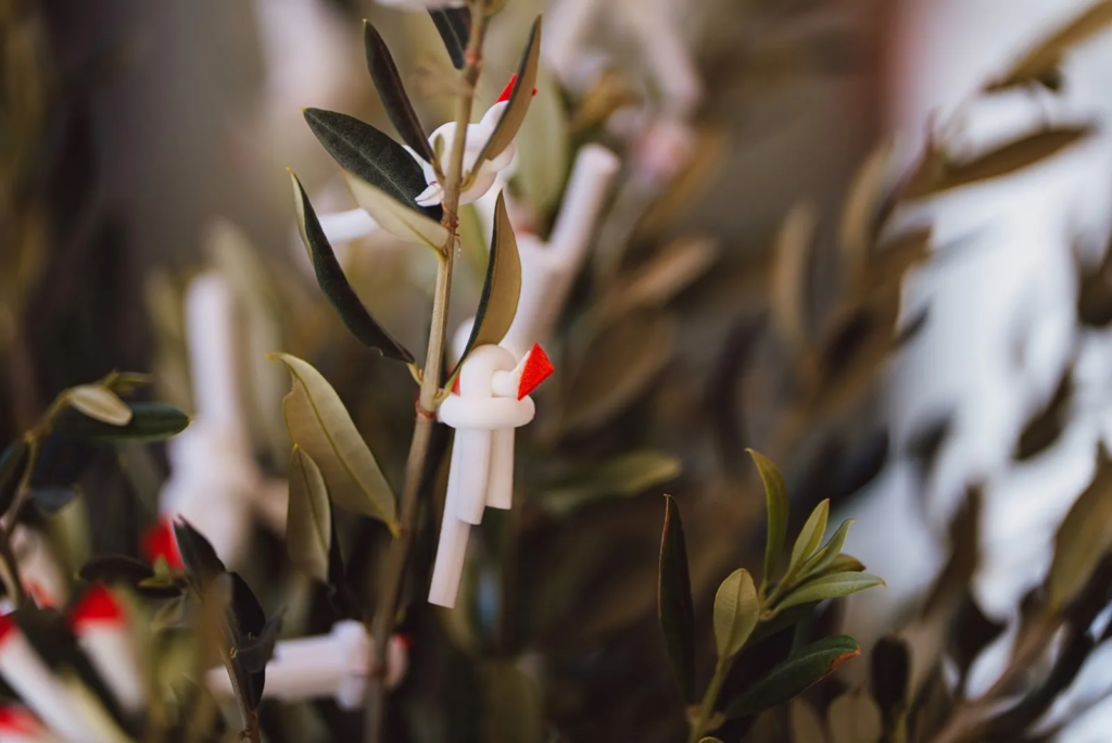 – Za izradu tičice trebaju vam tri komada bijele srčike. Od jednog dijela se pravi tijelo, savija u obliku slova S, a drugi dio je za krila. Treći komad obavije i tijelo i krila, a onda se tičica stisne bakrenom žicicom kojom se stavlja na grančicu masline. Korak unatrag, smokva se bere u rano proljeće kada ona izbaci svoje mladice. Grana se reže od od čvora do čvora, a onda se pomoću štapova ježovine, različitih veličina, izvlači spomenuta srčika – objašnjava Katija. Srčika je, inače, po vađenju mekana i podatna za izradu, a već nakon sat, dva postaje kruti maleni bijeli štapić. Zato vrijedi što prije sastaviti oblik tičice, a na kraju joj i na glavu dodati crvenu čoju koja glumi krijestu.