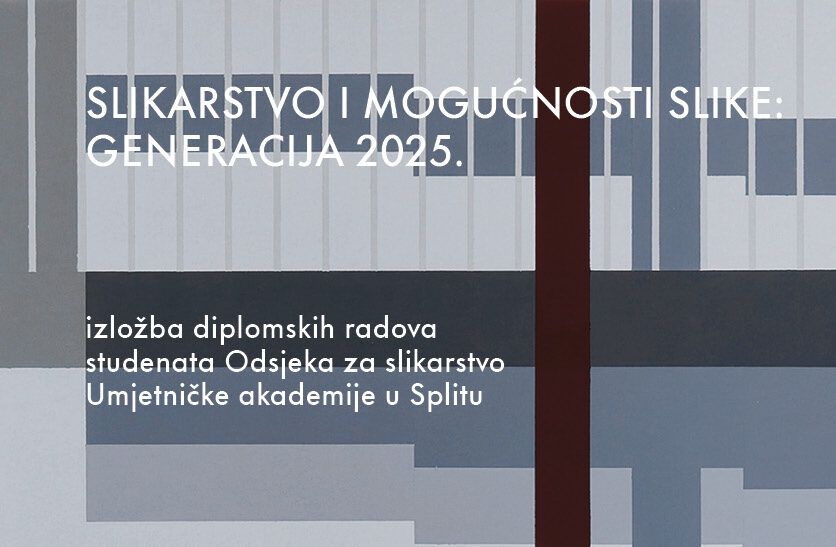 U Sveučilišnoj galeriji u Splitu, u četvrtak, 2. travnja s početkom u 19 sati otvara se izložba Slikarstvo i mogućnost slike: generacije 2025., kojom se splitskoj publici predstavljaju diplomski radovi studenata Odsjeka za slikarstvo Umjetničke akademije u Splitu koji su diplomirali 2025. godine.