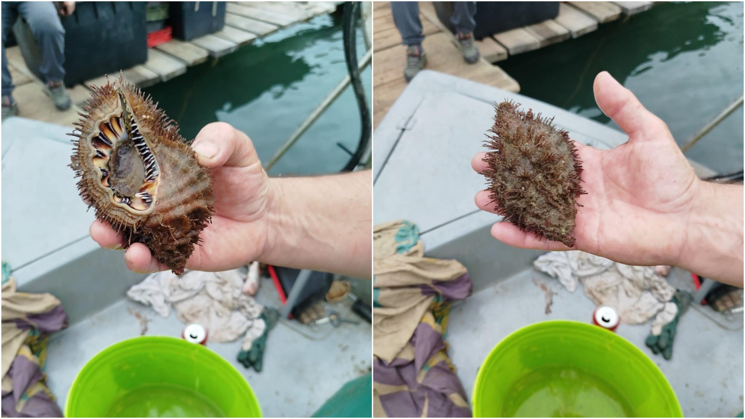 Jučer je ribar Igor Kordiš, poznat pod nadimkom “Korda”, u mreže za orade ulovio neobičnog puža – divovskog dlakavog tritona (Monoplex parthenopeus) – na dubini od 8 metara u blizini Verudele, Pula. – izvijestili su iz Aquarium Pula.