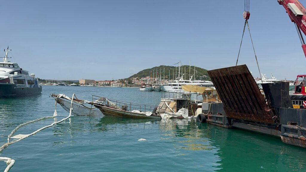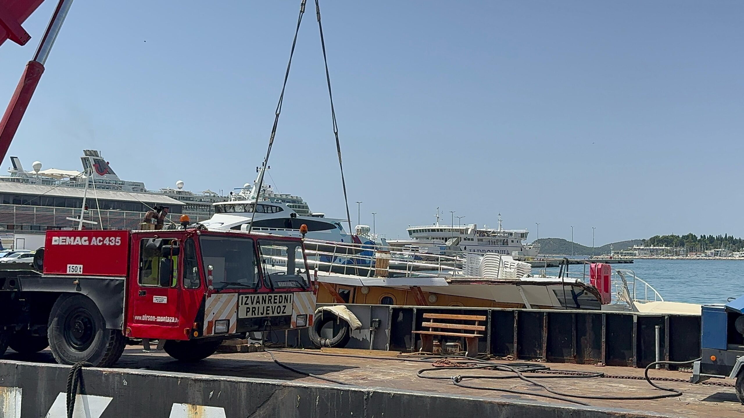 Izvlačenje broda obavljeno je uz pomoć specijalizirane dizalice.