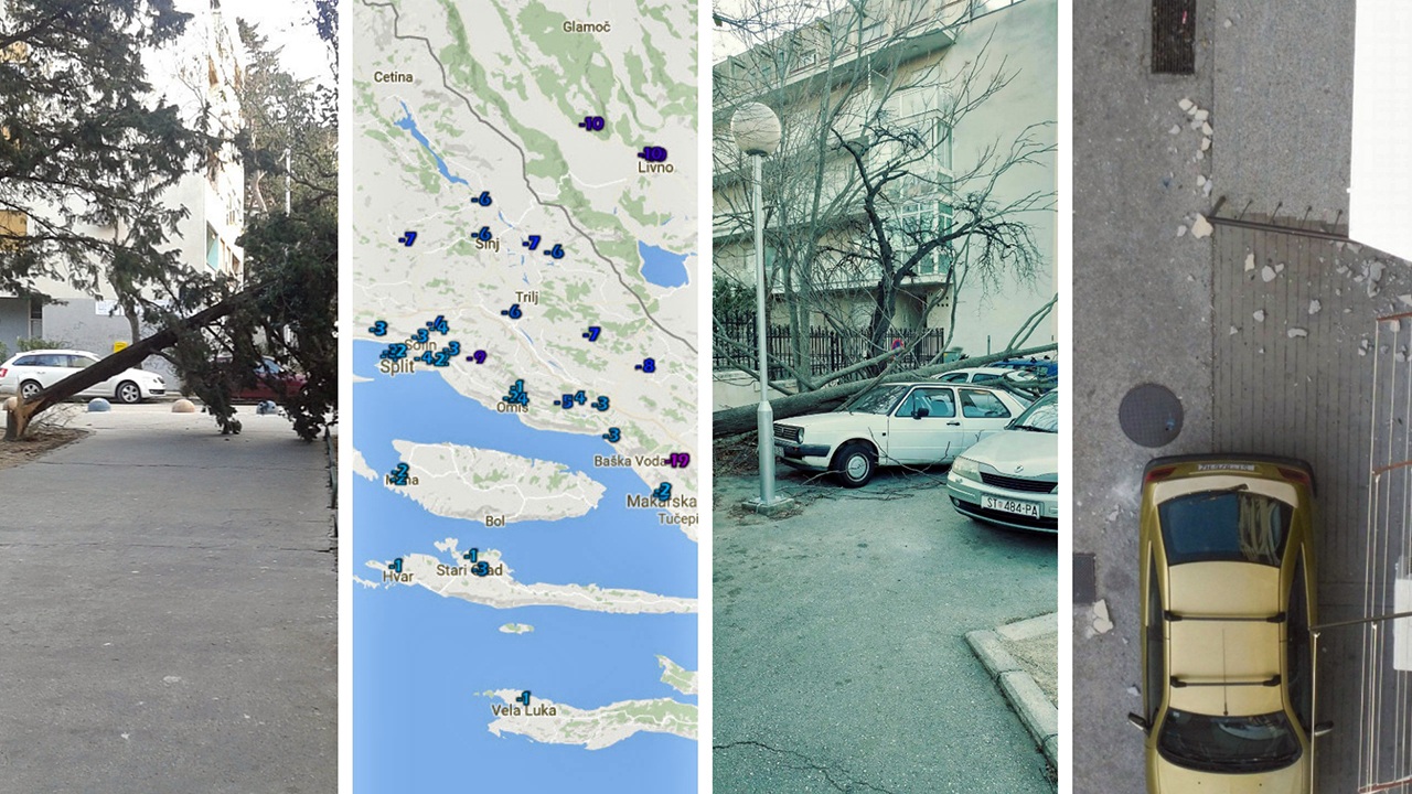 Prema podacima DHMZ-a u 13 sati, većina meteorloških postaja u Dalmaciji ima “negativne” temperature zraka. Pritom je Split najhladniji grad na obali s -3°C. Drugdje su temperature uz obalu i na otocima od -2 do +2°C, a u Zagori od -4 do -7°C. Biokovo i dalje drži -19°C.