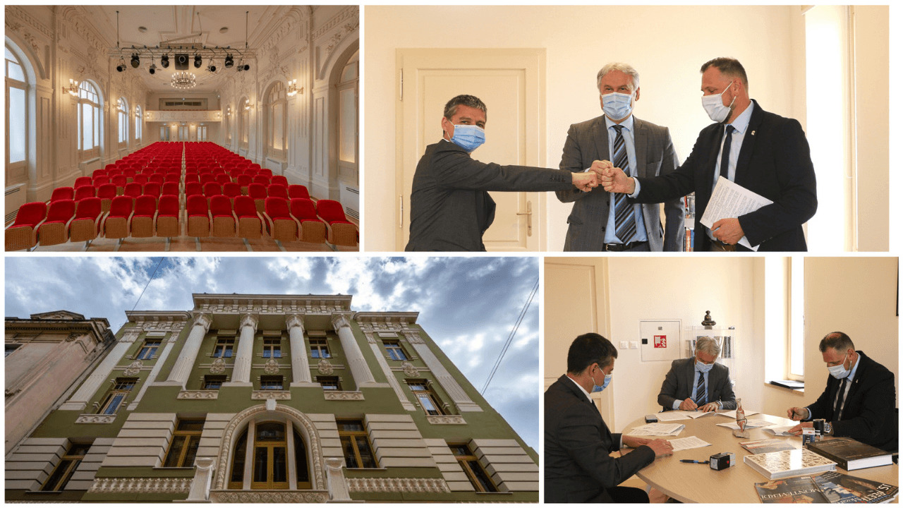 U novobnovljenom Hrvatskom domu Split, jednom od najraskošnijih interijera splitske, ali i hrvatske kulturne scene, rektor prof.dr.sc. Dragan Ljutić ispred Sveučilišta u Splitu, dekan izv.prof.art. Edvin Dragičević ispred Umjetničke akademije u Splitu te v.d. ravnatelj Marin Kaporelo, spec.admin.publ. ispred Javne ustanove u Kulturi Hrvatski dom Split sklopili su danas, 13.5.2021. tripartitni Ugovor o suradnji Sveučilišta u Splitu, Sastavnice i Nastavne baze.
