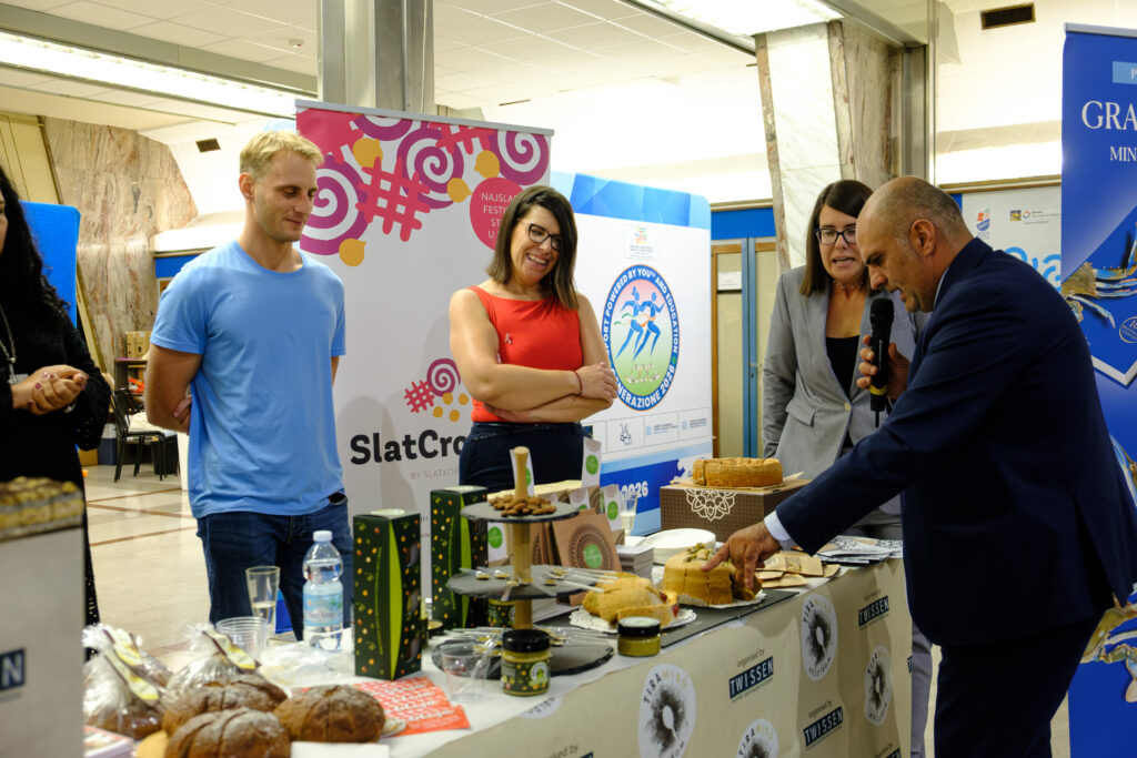 Gostovanje je započelo u petak, 10. listopada, jednostanom prezentacijom u Salone Borsa Della Camera di Commercio, nakon koje je uslijedila degustacija koja je izazvala veliki interes okupljenih. Na prezentaciji su, osim samog festivala SlatCroFest by Slatkopedija, predstavljeni i proizvodi malih proizvođača koji su sudjelovali na prvom izdanju ovog festivala: ukusni padišpanji brenda Makolach, kao i fantastični slatki namazi brenda Brachatella, zatim poznata korčulanska slastica lumblija koju su zajednički predstavili Turistička zajednica općine Blato i Blatski fižuli, udruga u kulturi; martinjska torta, dugoselska torta i templarski keksi koje je predstavila Turistička zajednica grada Dugo Selo te torta di mandola koju je predstavila Turistička zajednica grada Vodnjana. Uz to, predstavljen je i festival Župski pjat koji od zaborava čuva slastice i druga jela iz Župe dubrovačke. O važnosti i vrijednosti ovog sudjelovanja svjedoči i činjenica da je istom prisustvovala i Davorka Sarić, hrvatska konzul savjetnica u Trstu, koja je svojim dolaskom podržala predstavljanje hrvatske slatke gastronomije u Italiji.