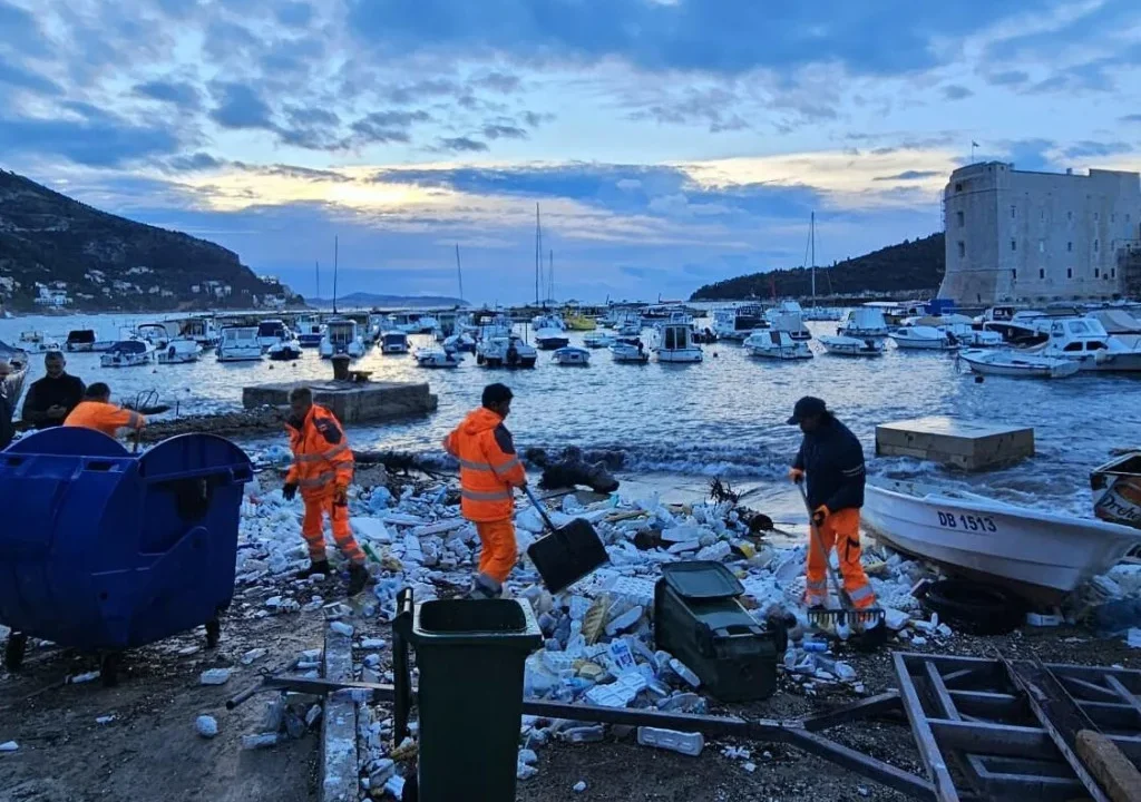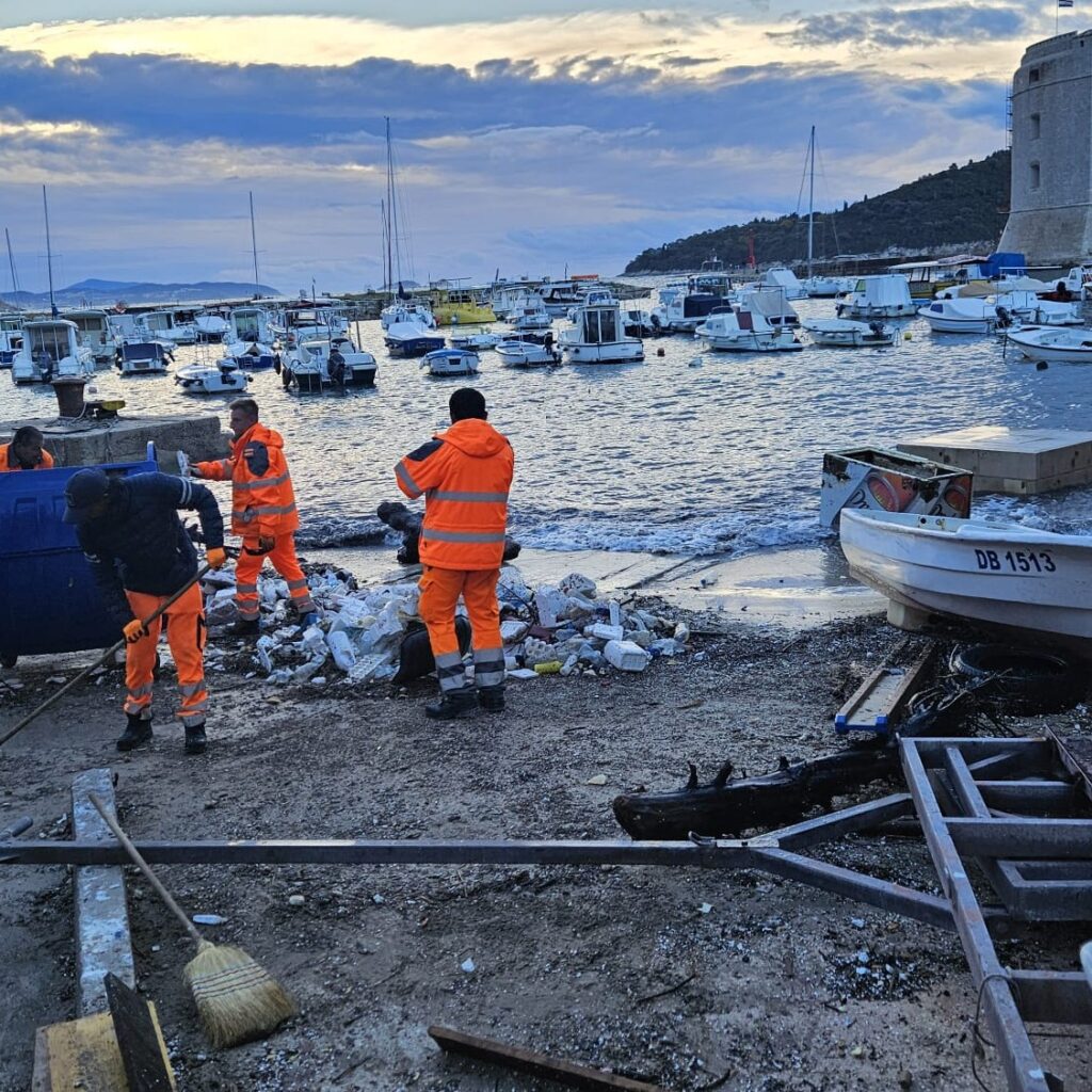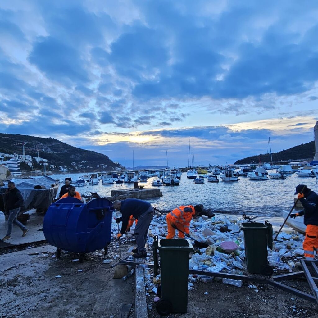 Djelatnici Čistoće, Luke Dubrovnik i Lučke kapetanije od ranog jutra uklanjaju velike nanose smeća, uglavnom plastike, koje je jugo nanijelo u Posat, gradsku luku i na plažu Banje.