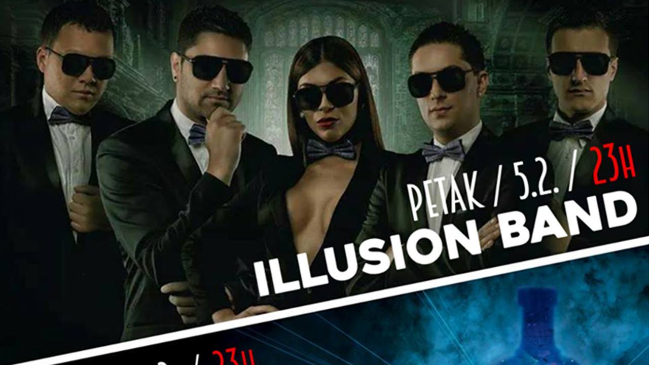 Ne propustite ovaj petak spektakularni nastup ILLUSION band-a koji dolazi specijalno iz Beograda, koji je svojim nastupima u Zvezdama Granda i suradnjom sa mnogim poznatim osobama iz svijeta glazbe na našim prostorima osigurao status jednog od najpoželjnijih band-ova.