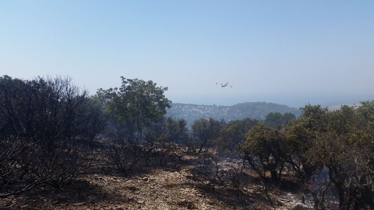Požar na Čiovu planuo je oko 10 sati, a negdje oko 11 sati bio je lokaliziran. Izgorjelo je oko dvije tisuće kvadrata borove šume, a točna lokacija požarišta je – kod repetitora na vrhu Žedno.