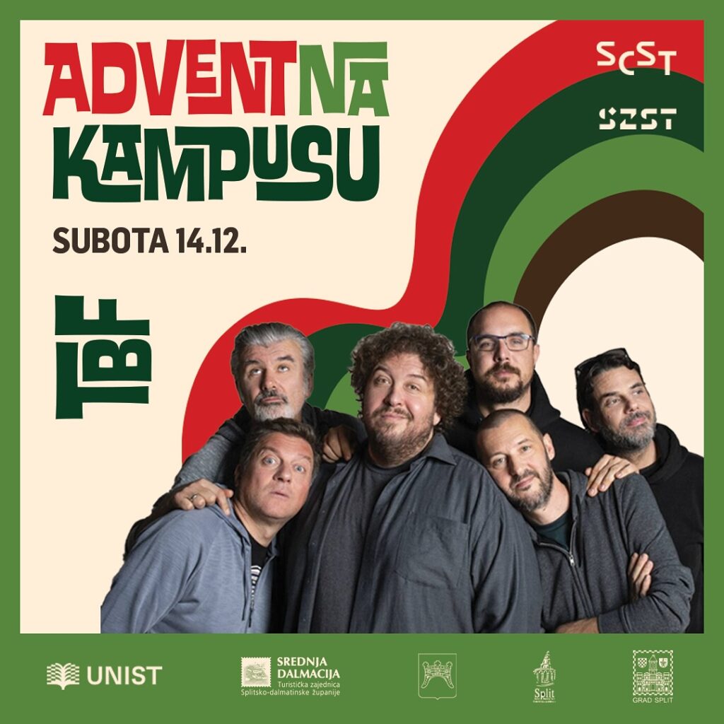 Vikend na kampusu u Splitu donosi bogat zabavni program koji će zasigurno zadovoljiti sve studente i posjetitelje. Večeras, 14. prosinca, studentski prostor bit će prepun energije jer na pozornicu stupa legendarni hip-hop sastav TBF. Ovaj popularni bend, koji dolazi s Blatina, svojim će nastupom stvoriti jedinstvenu atmosferu i garantirati dobru zabavu. Pozornica na kampusu bit će domaći teren za TBF-ovce, a mnogi će uživati u njihovim hitovima koji su postali zaštitni znak splitske glazbene scene.