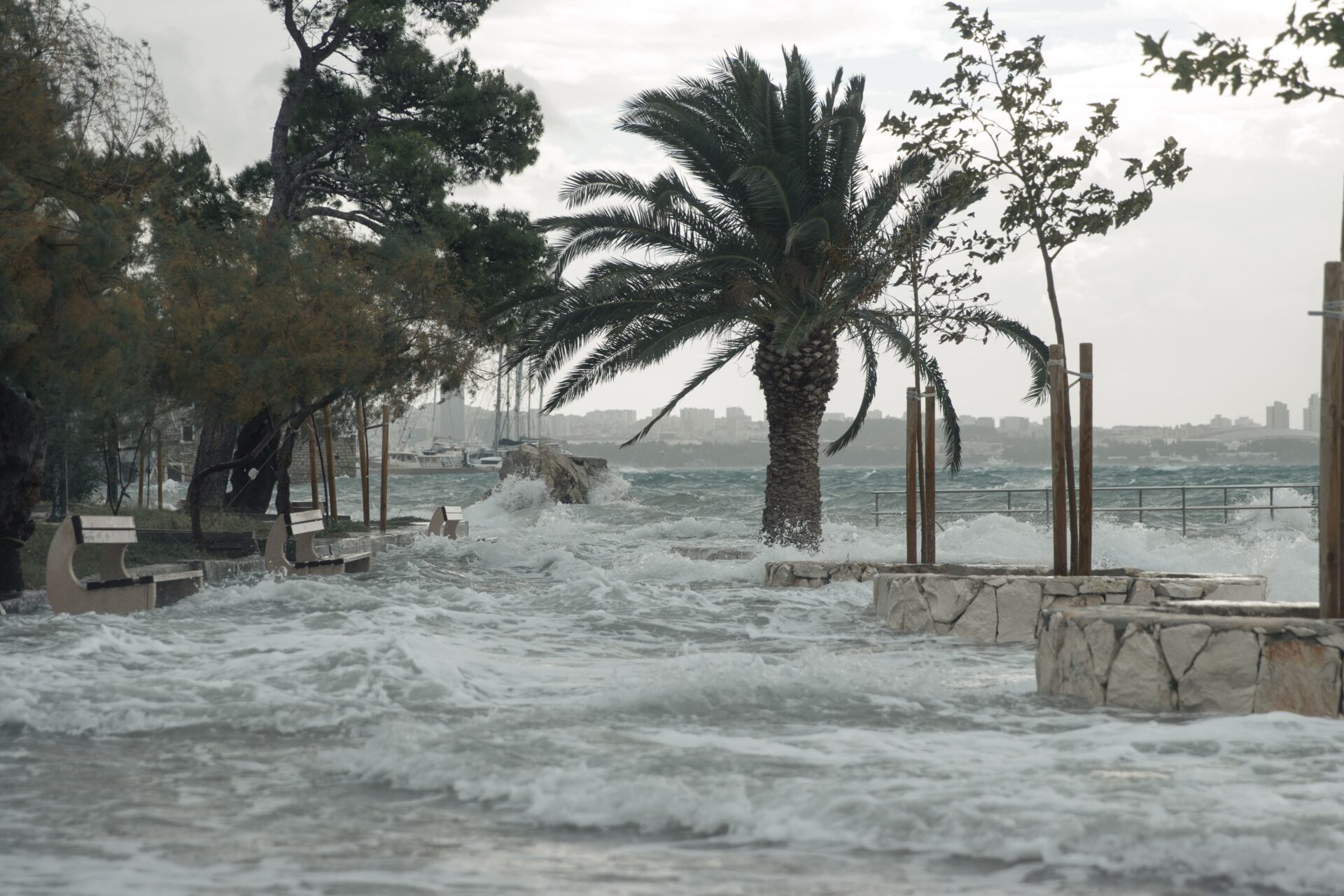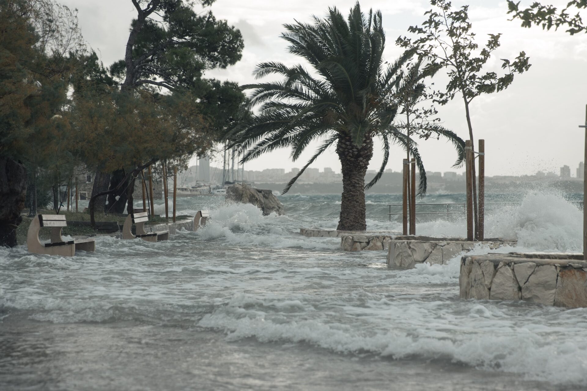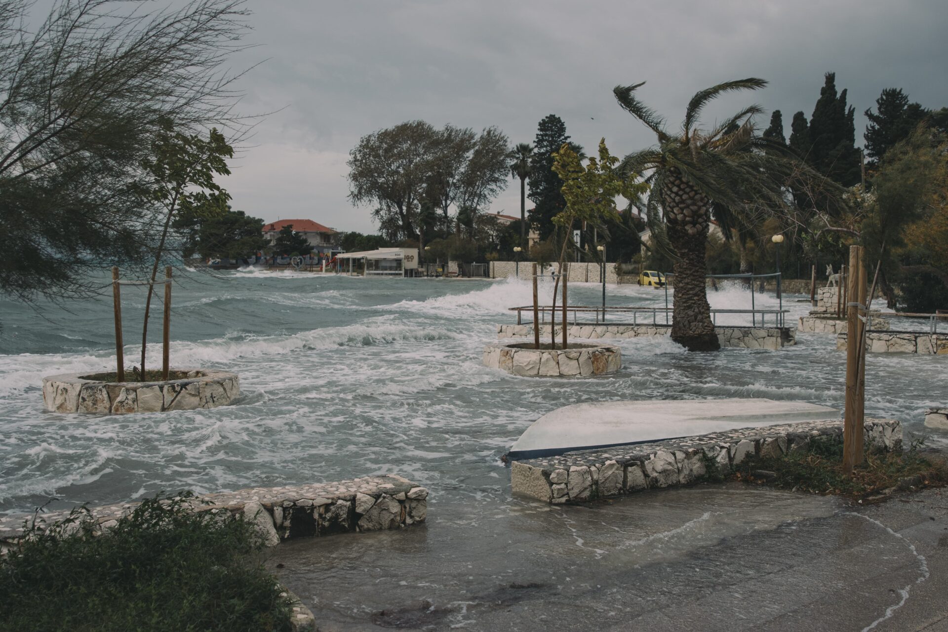 Vjetar još ne usporava, a valovi su sve veći. Riva i plaže su poplavljene, plima je konstantno jako visoka, a more nikako da se povuče na svoje normalne razine.