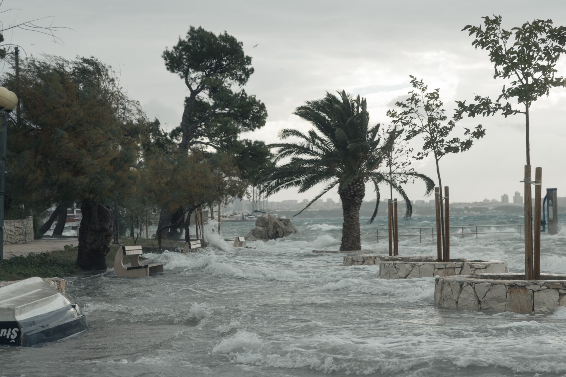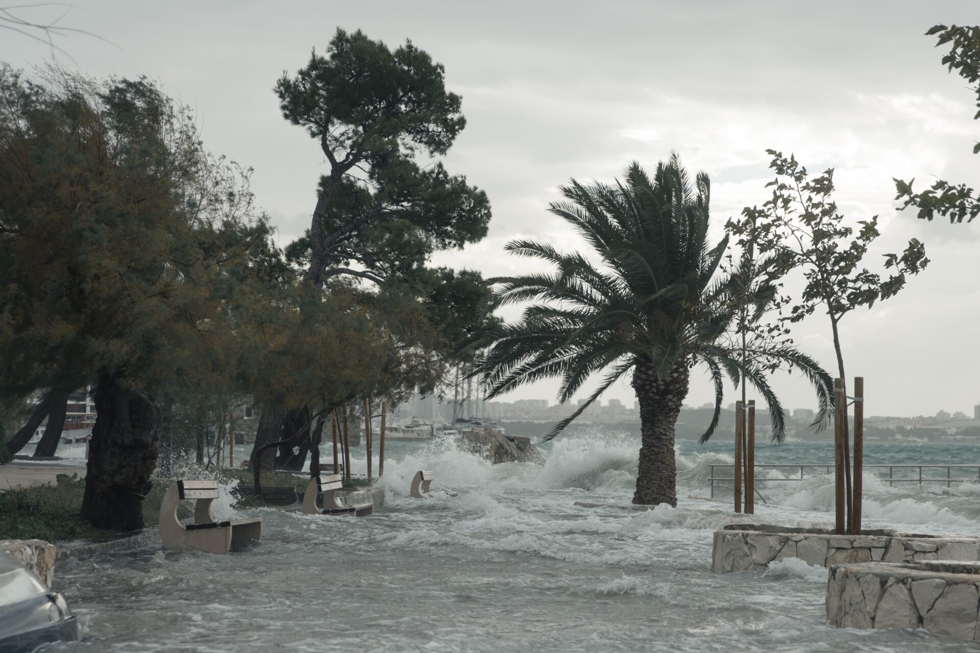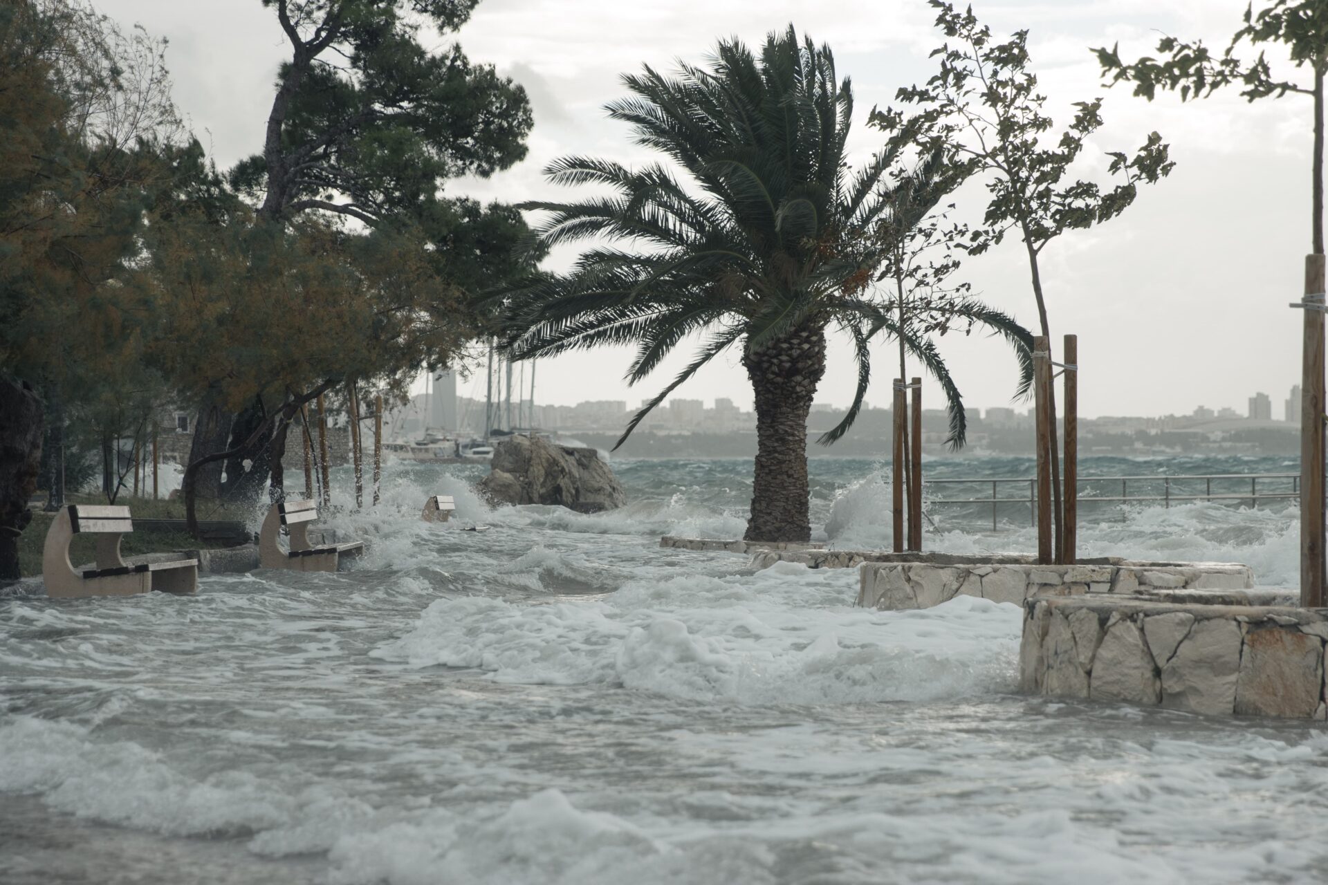 Vjetar još ne usporava, a valovi su sve veći. Riva i plaže su poplavljene, plima je konstantno jako visoka, a more nikako da se povuče na svoje normalne razine.