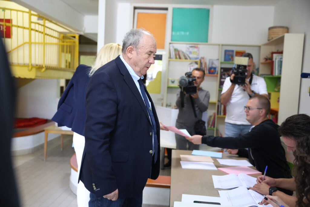 Kandidat Hrvatske građanske stranke za gradonačelnika Splita, Željko Kerum, svoj je glas dao u društvu supruge Fani oko 10:30 sati na biračkom mjestu u Osnovnoj školi Meje.