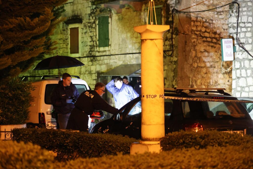 Jaka kiša i grmljavinsko nevrijeme otežavali su očevid krvoprolića u Kaštel Štafiliću, u Bihačkoj ulici, kojeg provodi policija uz nadzor i rukovođenje Rene Laura, zamjenice županijske državne odvjetnice. Kod kućnog broja 11 ondje je pomahnitali muškarac s tri metka iz vatrenog oružja ranio drugog muškarca, doznalo se pripadnika Hrvatske gorske službe spašavanja s područja stanice Split dok je još jednog muškarca, koji je pomagao prvoozlijeđenom, udario sjekirom po glavi.