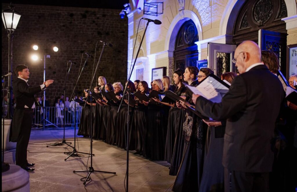 Pod ravnanjem maestra Vetona Marevcija, koncert je započeo intoniranjem djela Ljube Stipišića Delmate “Čuj, dozivlju časni pređi”, ujedno i himne Splitsko-dalmatinske županije, a nastavio se najljepšim arijama opernih naslova koji su premijerno izvedeni u protekloj sezoni HNK Split (Mozartova “Čarobna frula” te Bellinijeva “Capuleti i Montecchi”) i onih koji očekuju splitsku kazališnu publiku u sezoni 24/25 (Leoncavallova “I Pagliacci” i Donizettijev “Ljubavni napitak”).
