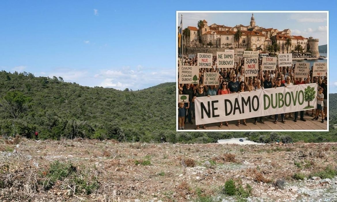 Razlog prosvjeda i velikog nezadovoljstva Korčulana na lokaciji Dubovo (smještenoj u srcu otoka, kod Pupnata) je devastacija prirode i pretvaranje te lokacije u odlagalište otpada.