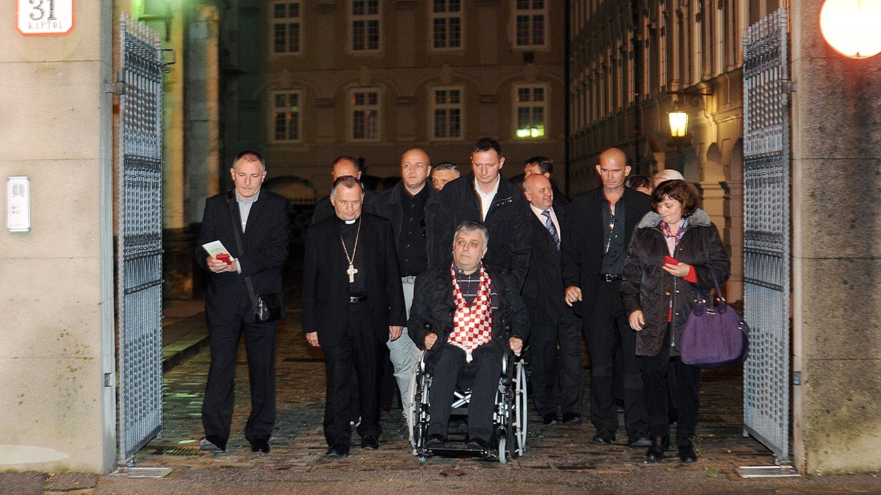 S braniteljima je pred novinare izašao zagrebački pomoćni biskup Valentin Pozaić, no nije želio davati izjave, najavivši priopćenje Zagrebačke nadbiskupije.
