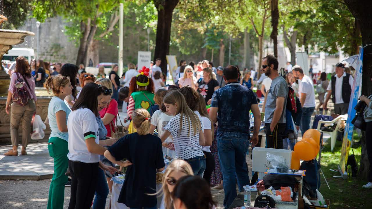 Tribina je organizirana uz financijsku podršku Nacionalne zaklade za razvoj civilnoga društva. Humanitarno-prodajna izložba održala se u subotu 25. svibnja u Strossmayerovom parku (Đardinu). Na izložbi je sudjelovalo 30-ak udruga i javnih ustanova te preko 100 volontera. Na štandovima se moglo naći svega – od knjiga i priručnika pa sve do nakita, ukrasa te prirodne kozmetike. Splitsko dijabetičko društvo već tradicionalno je mjerilo tlak i šećer u krvi, volonterke OŠ Grohote sa Šolte su predstavile proizvode svoje učeničke zadruge, kao i učenici COO „Juraj Bonači“, a klaunica Pipi Duga Čarapa iz udruge „Osmijeh – kreator zabave“ zabavljala je najmlađe izrađujući razne životinje i likove od balona.