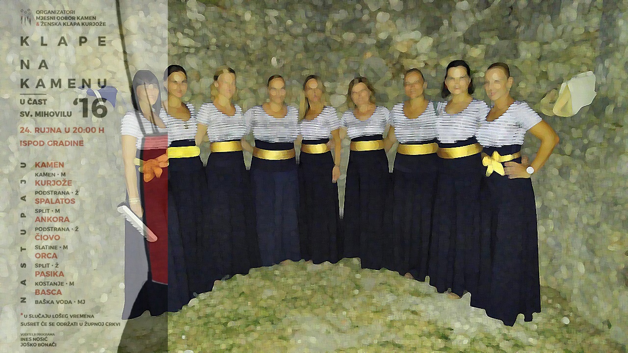 Program će voditi Joško Bonaći i Ines Nosić, a ulaz je za sve posjetitelje slobodan. Organizator događanja su ženska klapa Kurjože i mjesni odbor Kamen.