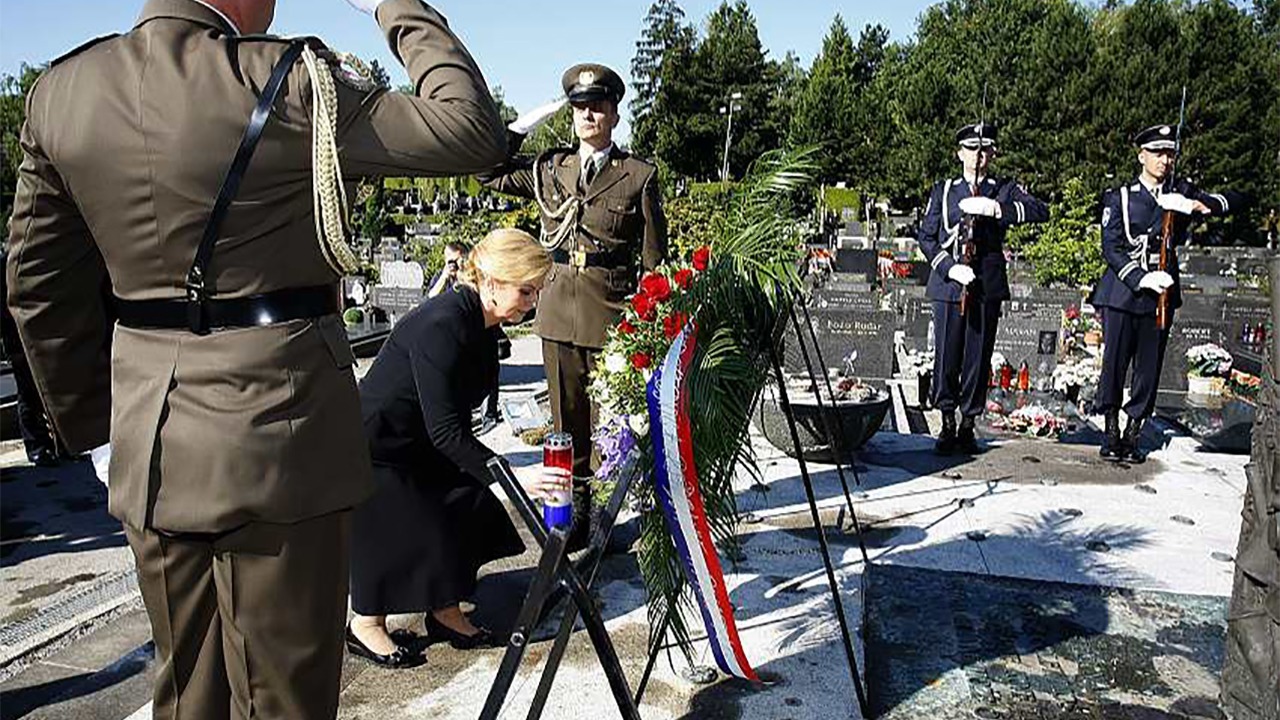 Predsjednica Grabar-Kitarović je nakon polaganja vijenaca čestitala Dan državnosti svim hrvatskim građankama i građanima te ih pozvala na zajedništvo u obilježavanju tog važnog dana.