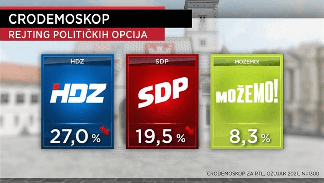 CRO Demoskop: HDZ-u i SDP-u blagi pad podrške, Možemo! treća stranka u Hrvatskoj