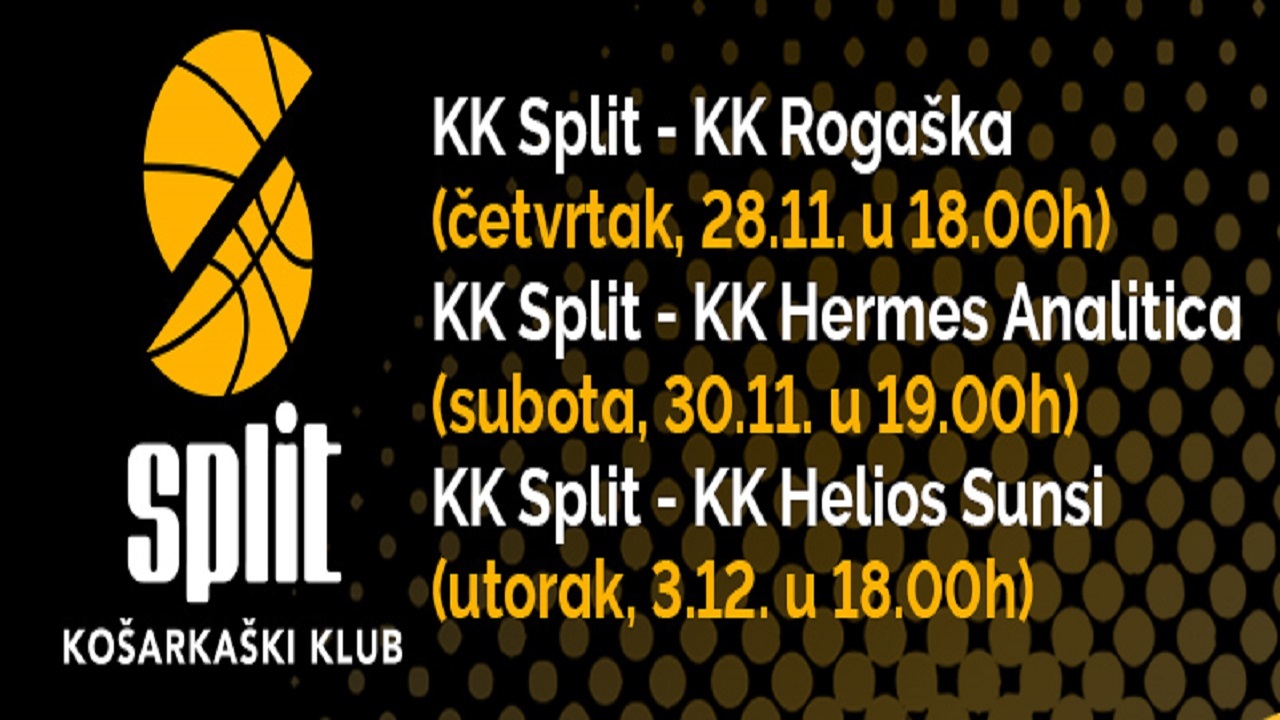 Kreće serija od tri domaće utakmice Splita, u četvrtak u 18 sati na Gripe u sklopu 9. kola Druge ABA lige stiže Rogaška, u subotu Hermes Analitica, a u utorak gosti “Žutih” su Helios Sunsi. Bit će to posljednje utakmice na starom parketu, koji je postavljen 1997. godine. Nakon utakmice s Heliosom, već istu večer, započinju radovi, koji bi trebali biti gotovi u najkraćem mogućem roku. Tim povodom, pod nazivom “Adio stari parket” KK Split je u prodaju pustio paket ulaznica za sve tri utakmice po cijeni od 50 kuna.