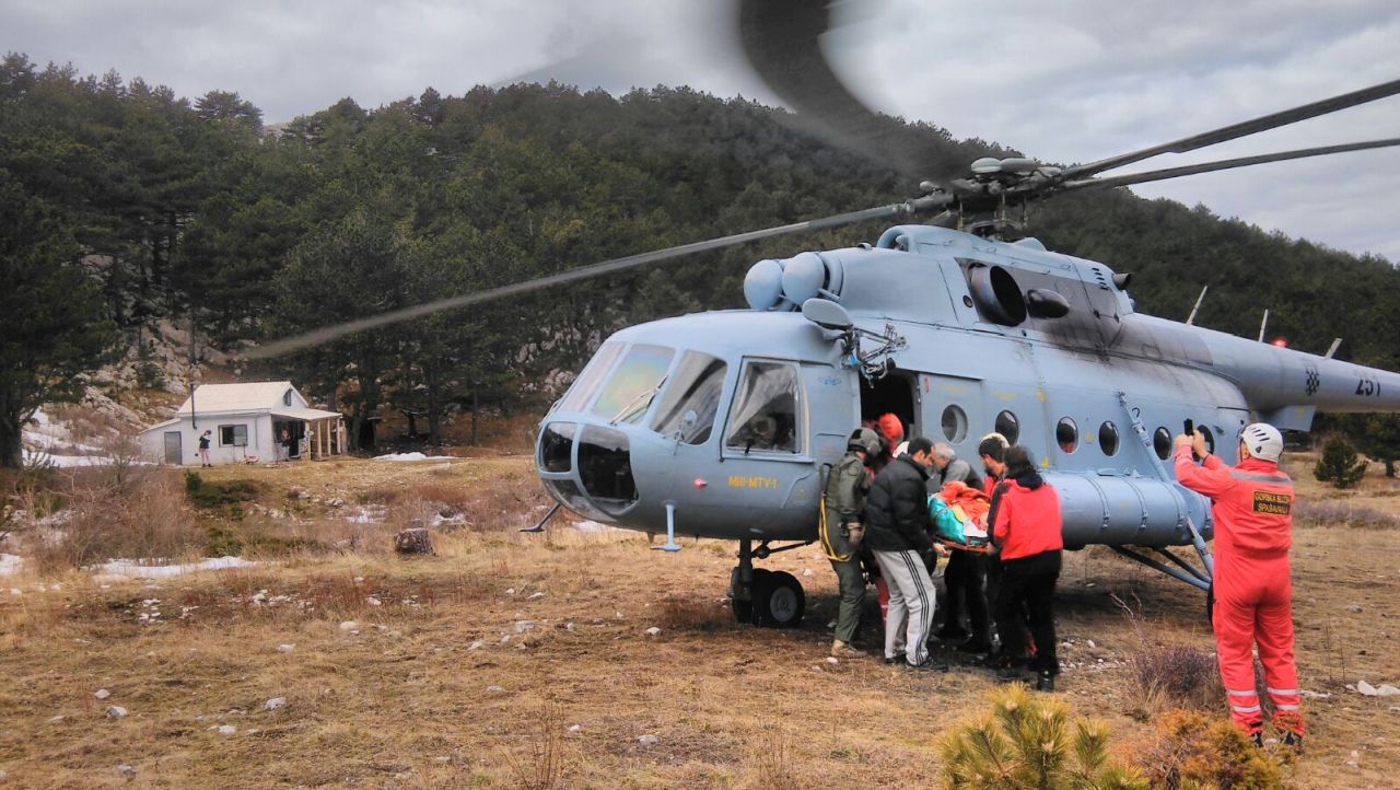 Ozlijeđeni planinar ukrcan je u helihopter i prebačen je u KBC Split. Olakšavajuća okolnost u akciji spašavanja je što je izgrađen planinski helidrom blizu mjesta nesreće. HGSS je dosta uložio u ovakve helidrome u planinama i gotovo svim nenaseljenim otocima na Jadranu.