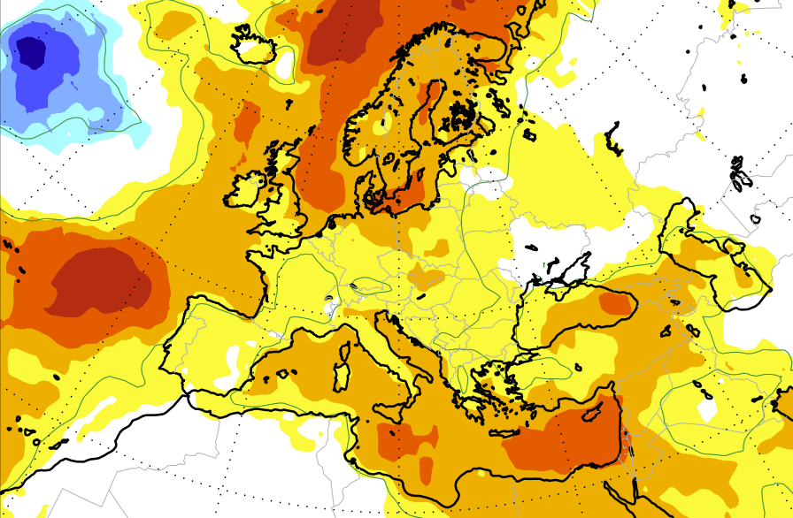 Diljem Europe vidimo većinom ispodprosječne oborine, što upućuje na područje povišenog tlaka i vjerojatno suši/hladniji zrak sa sjeveroistoka, piše Severe Weather Europe.