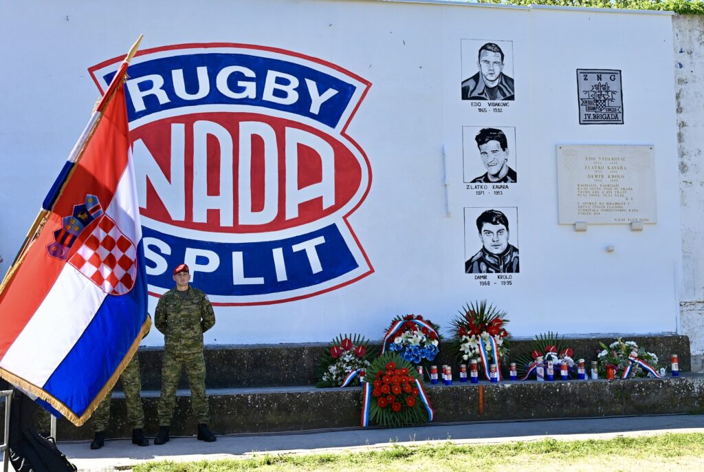 Povodom 35. obljetnice osnutka 4. gardijske brigade ‘Pauci’, danas ujutro u Splitu je započela svečanost polaganja vijenaca na spomen-ploču posvećenu poginulim ragbijašima Edi Vidakoviću, Zlatku Kavariju i Damiru Krolu na Starome placu.