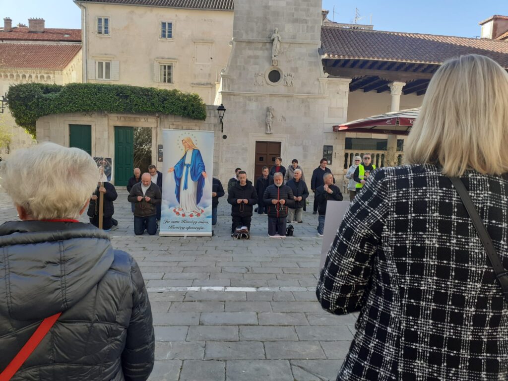 Danas, u subotu 5. travnja, od 8:30 do 9:30 sati, na Trgu Ivana Pavla II u Trogiru održano je mirno okupljanje građanki i građana pod nazivom “Sloboda nije na koljenima”. Ova akcija organizirana je kao odgovor na prisutnost molitelja koji već više od dvije godine koriste javni prostor kako bi izražavali stavove koji ne ostaju unutar granica osobne vjere, već prelaze u političke poruke.