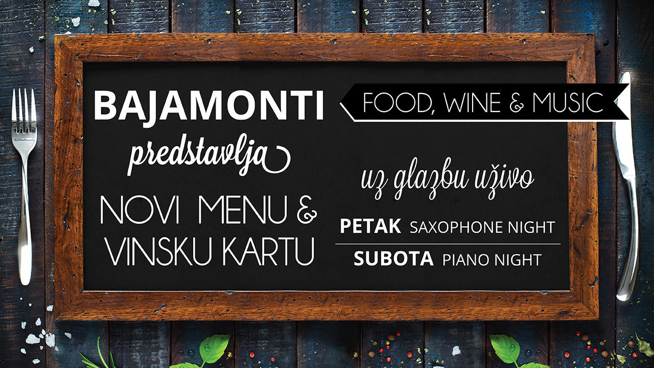 Ovaj vikend restoran Bajamonti predstavlja novi zimski jelovnik i vinsku kartu. Uz bogati meni i široku vinsku ponudu Bajamonti za priprema i glazbene poslastice. U petak uživajte uz tople tonove saksofona, a subota je rezervirana za piano night uz maestra Giovannia.