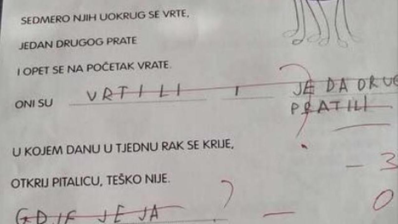 Riječ je sedam dana u tjednu i većina prvašića je dobila ocjenu jedan iz tog testa.