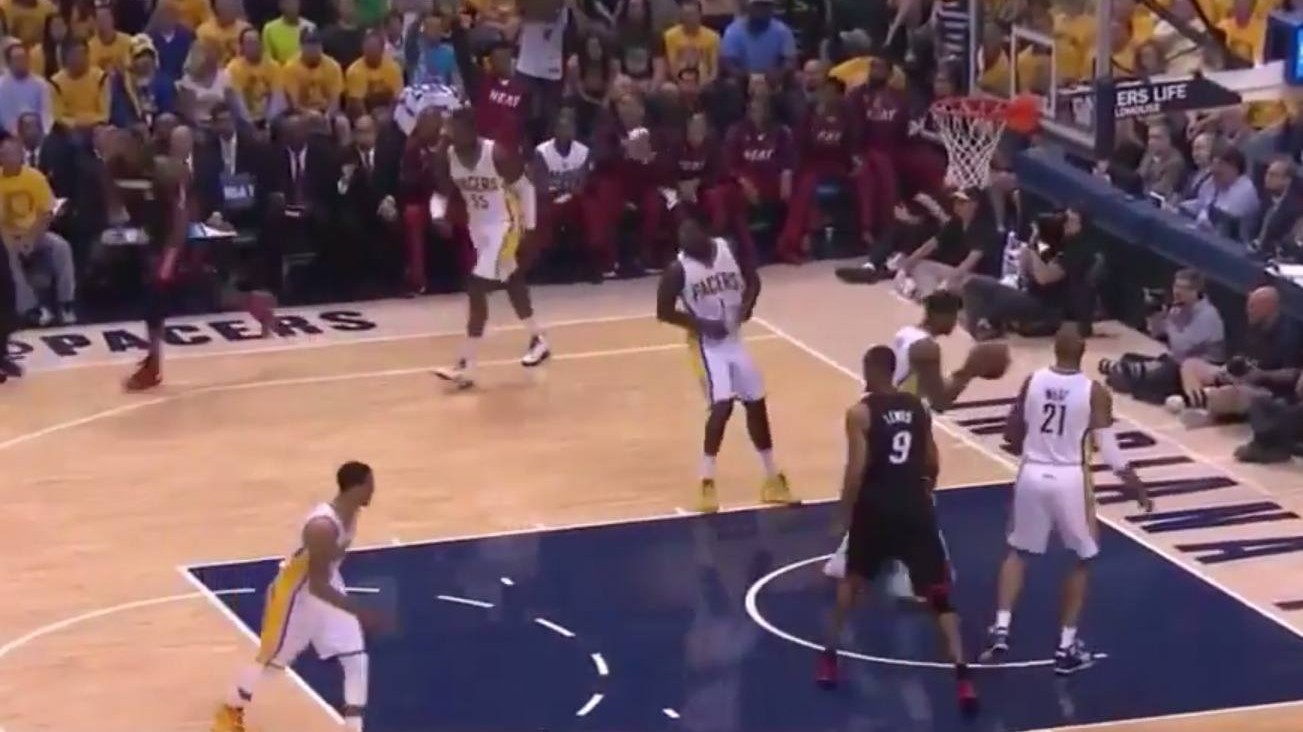 George i David West kombinirano su zabili Indianinih 36 posljednjih koševa, uključujući svih 29 u posljednjoj četvrtini. Nakon Jamesove trice za poravnanje na 81-81 tri minute i 51 sekundu prije kraja George je ubacio sljedećih osam koševa Pacersa, uključujući dvije trice za vodstvo 91-87 46 sekundi prije kraja. Miami je imao posljednju priliku za poravnanje, ali trica Chrisa Bosha iz kuta 4.9 sekundi prije kraja nije našla put kroz mrežicu.