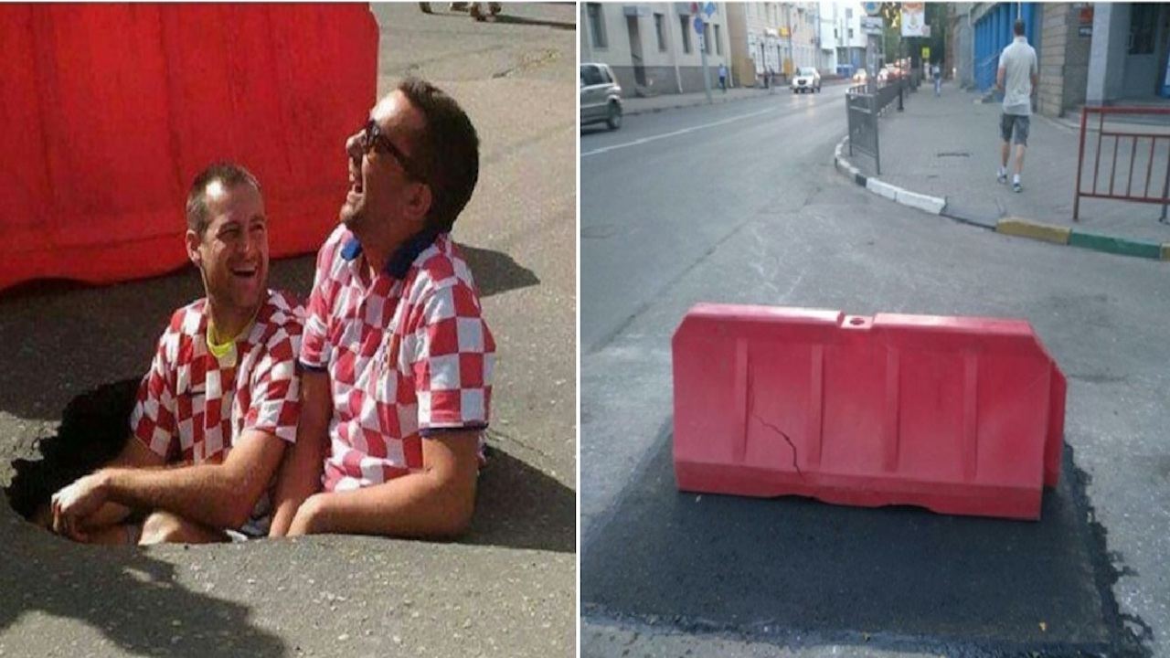Navijači iz Zadra, Šibenika i Splita ovih dana guštaju u Rusiji i bodre našu reprezentaciju, a Papak i Torlaka, obojica u kockastim dresovima, fotografirali su se u rupi u asfaltu na nekoj ruskoj cesti. Njihova fotka proširila se ruskim medijima i društvenim mrežama, što je potaklo tamošnje komunalce da momentalno izađu na teren srediti tu za promet i pješake opasnu situaciju.