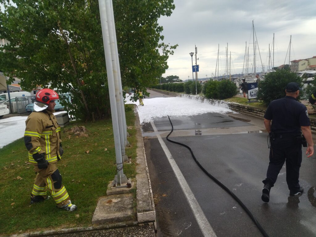 Kako navode, DVD Rab zaprimio je dojavu u 12:25 sati o istjecanju veće količine benzina. Odmah su na intervenciju upućena tri vozila i osam vatrogasaca.