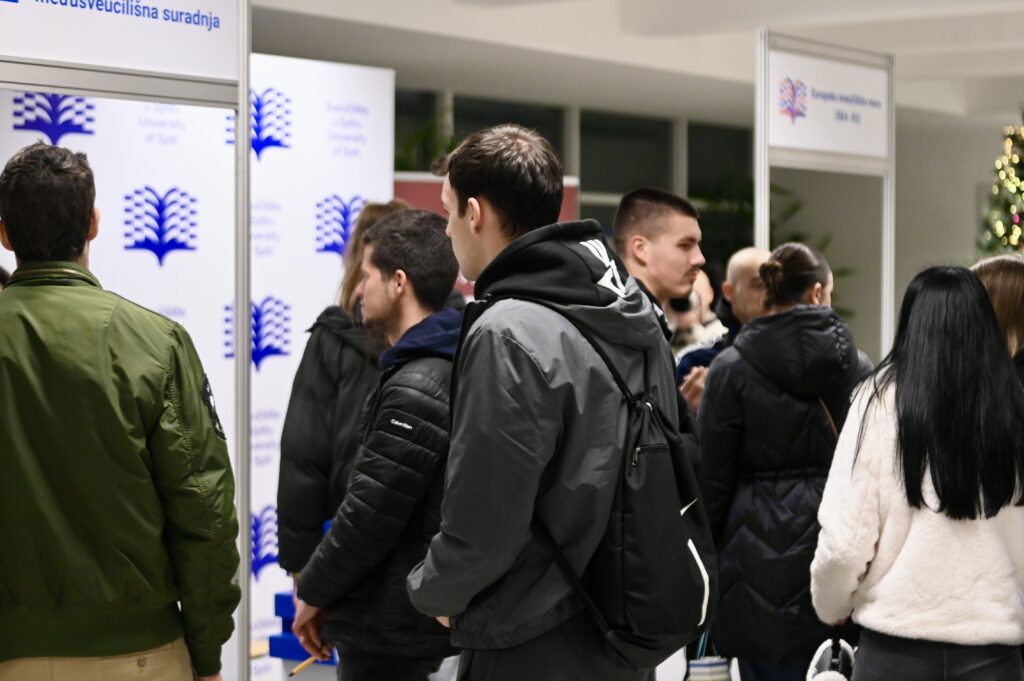 U petak, 5. prosinca, na splitskom kampusu nastavljene su aktivnosti ovogodišnje Smotre Sveučilišta u Splitu, koja se održava u amfiteatrima Zgrade tri fakulteta na adresi Ruđera Boškovića 33. Ovo je ujedno i posljednji dan Smotre, a događaj je i ovaj put privukao velik broj srednjoškolaca, posebno maturanata, koji su imali priliku iz prve ruke saznati sve o studijskim programima i uvjetima upisa za sastavnice Sveučilišta.