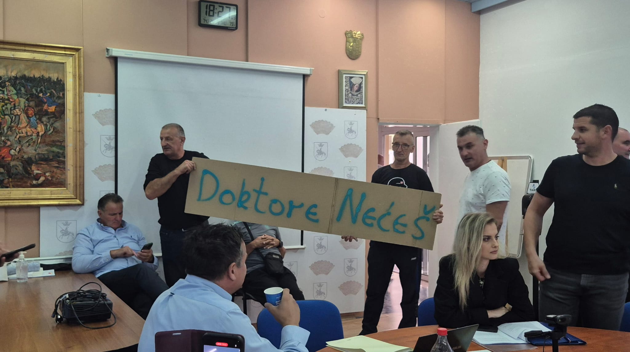 U trenutku kad je gradonačelnik Bulj završavao govor, zbila se scena opisana na početku teksta. Bulj je rekao i kako će sazvati izvanrednu sjednicu o Stipi Jukiću, Igoru Vidalini i Stipi Periću, trojici HDZ-ovih vijećnika. Tematska sjednica se, kao i svaka sjednica vijeća dosad, potom pretvorila u međusobna optuživanja gradonačelnika Mira Bulja i predstavničke većine HDZ-a i liste Stipislava Jadrijevića.