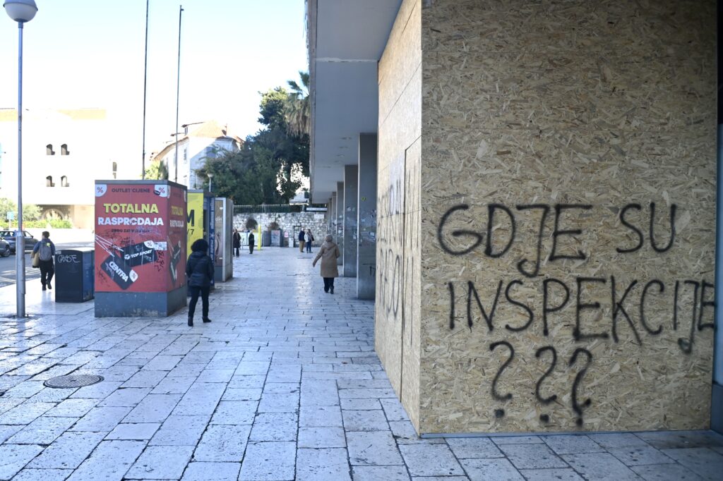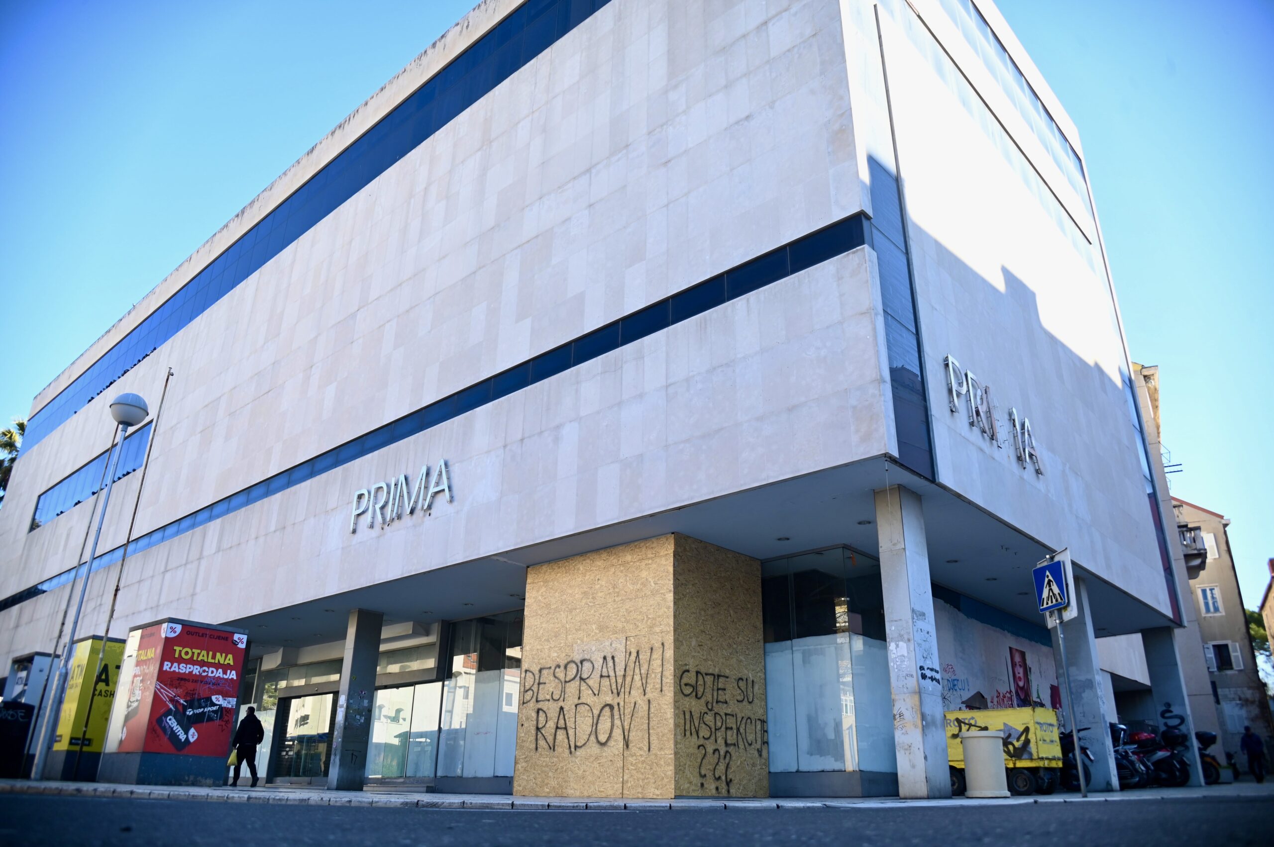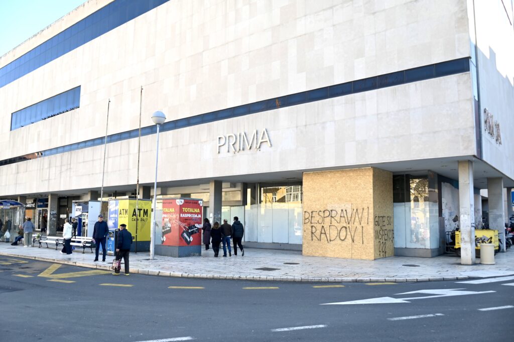 Vidljivo je to i iz fotografija ili kada prošetate prizemljem PRIME gdje još velika većina školaraca čeka autobuse da nigdje nećete pronaći tko gradi, izvodi radove i što se uopće u prizemlju planira. Sinoć su tako osvanule i poruke “bespravni radovi”, “gdje su inspekcije”, “gdje su nadležni kulturno dobro” s kojima se očito želi poslati poruka nadležnim institucijama. U posjedu smo videa snimljenoga sinoć.