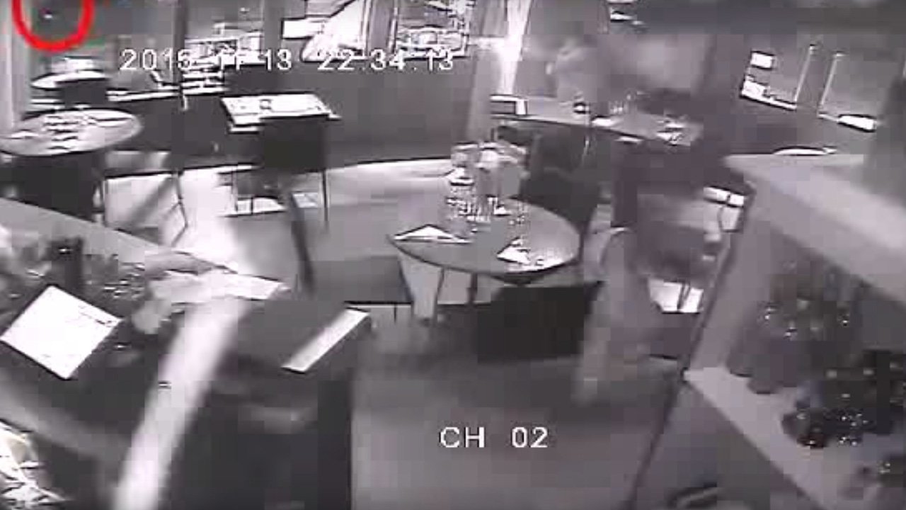 Na snimci se vidi osoba koja puca po gostima i osoblju kafića, a prema Dily Mailu, riječ je o Salahu Abdeslamu, već poznatom licu s tjeralice. Pucao je po gostima sve dok nije ostao bez streljiva (ili mu se pak kalašnjikov zaglavio), kada je pobjegao prema automobilu koji ga je čekao nedaleko kafića.