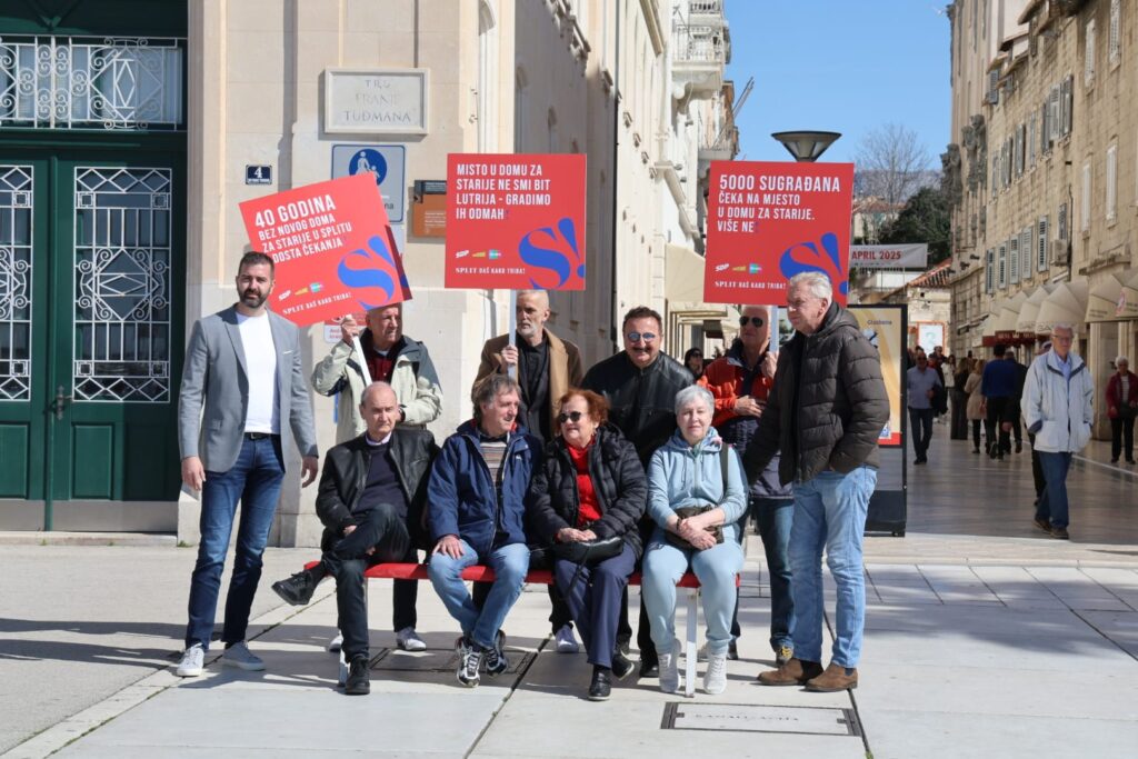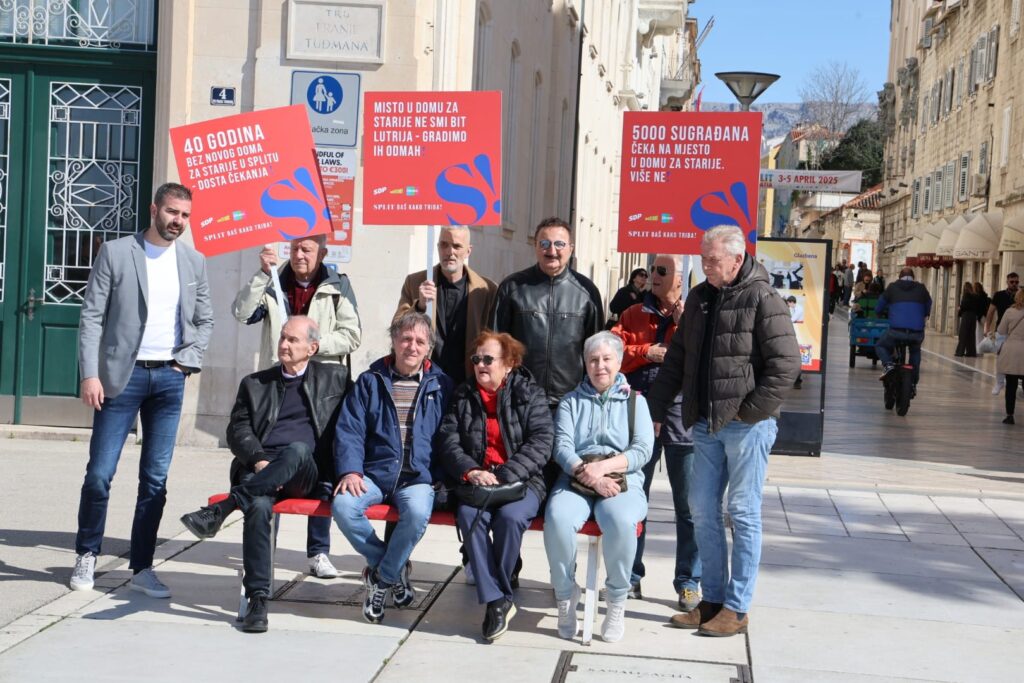 Na splitskoj Rivi danas je postavljena simbolična instalacija u obliku klupe, kojom su članovi koalicije SDP – Možemo! – Direkt upozorili na dugogodišnji problem nedostatka domova za starije u Splitu. Instalacija, postavljena u 11 sati, jasno prikazuje stvarnost s kojom se suočavaju umirovljenici, a događaju su prisustvovali i građani koji su izravno pogođeni ovim problemom.