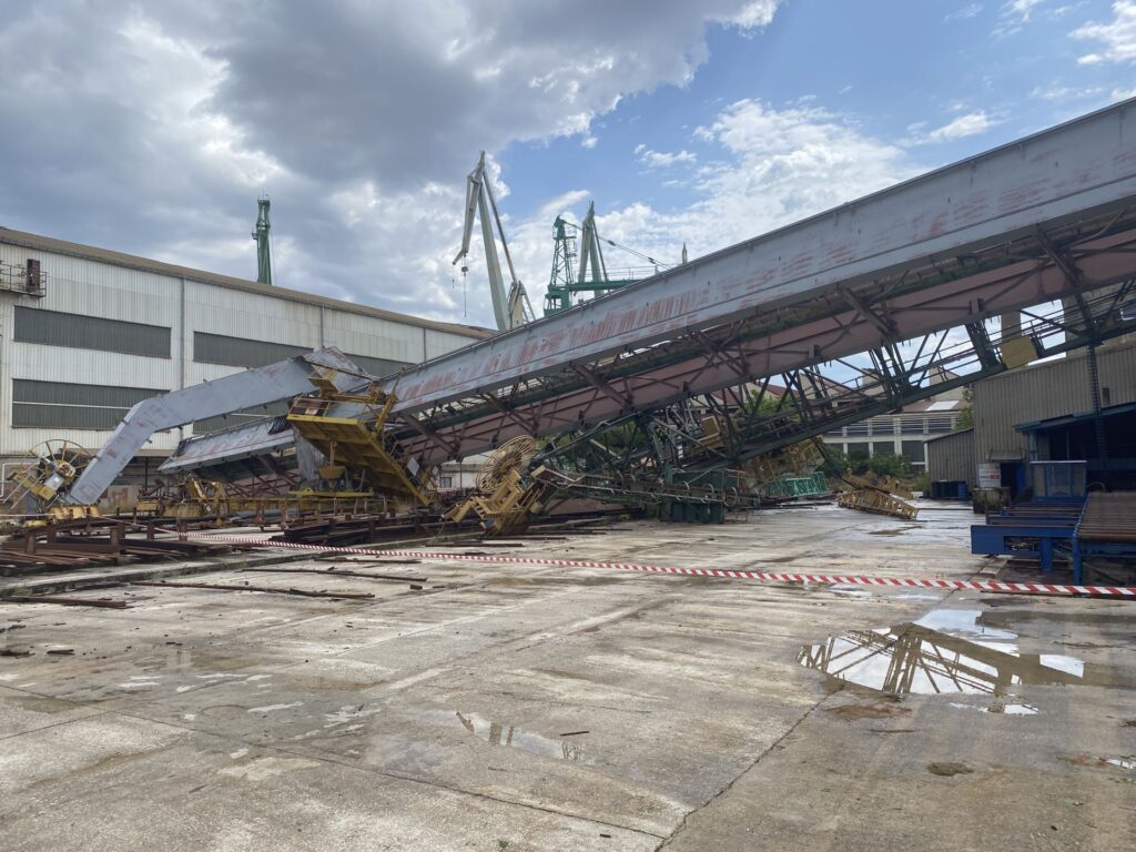 Jak vjetar i obilna kiša doveli su do rušenja velike portalne dizalice te oštećenja imovine, proizvodnih hala i radnih prostora, s kojih je vjetar odnosio krovove i razbijao prozore i stakla, uključujući i vozila pogođena srušenim stablima.