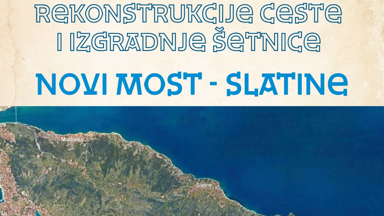 U četvrtak, 20. travnja u 19 sati u hotelu Sv. Križ u Arbaniji održat će se javna prezentacija projekta rekonstrukcije ceste i izgradnja šetnice od novog čiovskog mosta do Slatina. Grad Trogir ranije je dao ishoditi dozvole i izraditi projekt, uz suglasnost Hrvatskih cesta u čijoj nadležnosti je ova dionica. Prije predaje projektne dokumentacije i prije javnog savjetovanja, mještanima Arbanije i Mastrinke, a i svim drugim zainteresiranima, prezentirat će se projekt, financijski i vremenski okviri njegove realizacije, a predviđeno je vrijeme za raspravu i sugestije.