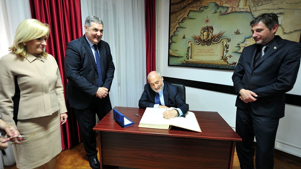 Na kraju primanja nobelovac Stiglitz, inače profesor na Sveučilištu Columbia u New Yorku, se upisao u Spomen knjigu grada Splita.