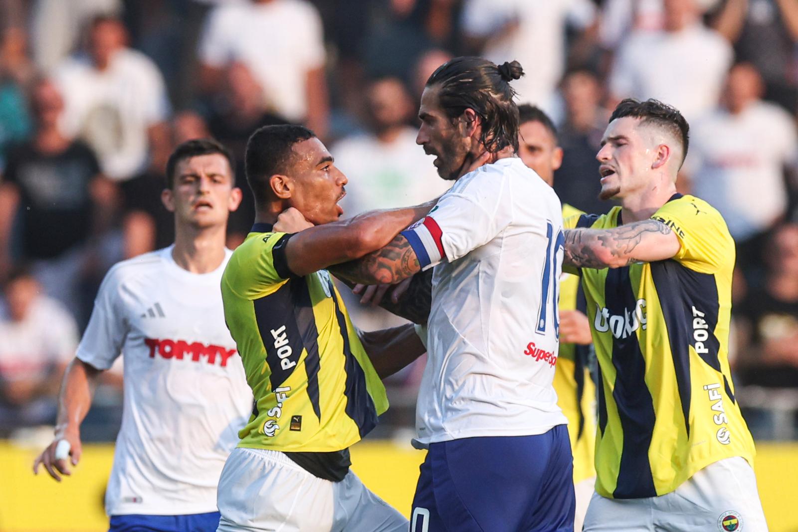 U 30. minuti zaiskrilo je između Livaje i Djikua, toliko i da je Jose Mourinho ušao na teren smiriti igrače. Djiku je najprije povlačio Livaju i nije puštao, onda je došlo do odguravanja, hvatanja za vrat, pokušaja udaranja dlanom po licu… Uglavnom, sudac im je dodijelio žute kartone, pružili su si ruke i nastavili dalje. U 38. je konačno Hajduk uputio udarac, Đolonga glavom na centaršut Dialla, ali otišlo je to daleko od gola.