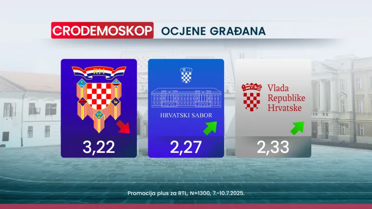 Vlada RH je u ovomjesečnom mjerenju doživljaja njezina rada za svoj rad dobila ocjenu 2.33 (prema prošlih 2.30). Najviša ocjena zabilježena je među biračima HDZ-a (3.58), dok su birači ostalih zastupljenijih stranaka bili manje “darežljivi” (DP 2,54; Most 1.99; SDP 1.90; Možemo 1.60). Doživljaj rada Vlade RH utvrđivan je i kroz razinu podrške politici Vlade Andreja Plenkovića koju u četrnaestom mjesecu trećeg mandata podržava 32.2 posto ispitanika (ista razina podrške zabilježena je i u prošlom mjerenju prije mjesec dana).