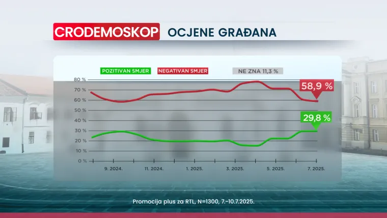 Smjer kretanja zemlje (kao svojevrsnog indikatora društvenog optimizma) početkom srpnja podupire 29.8 posto građana (prema 29.7 posto iz lipnja). Udio ispitanika koji smatraju da Hrvatska ide u pogrešnom smjeru sada iznosi 58.9 posto (prema 60,5 posto u lipnju). Kakav je smjer zemlje ne zna 11.3 posto građana.