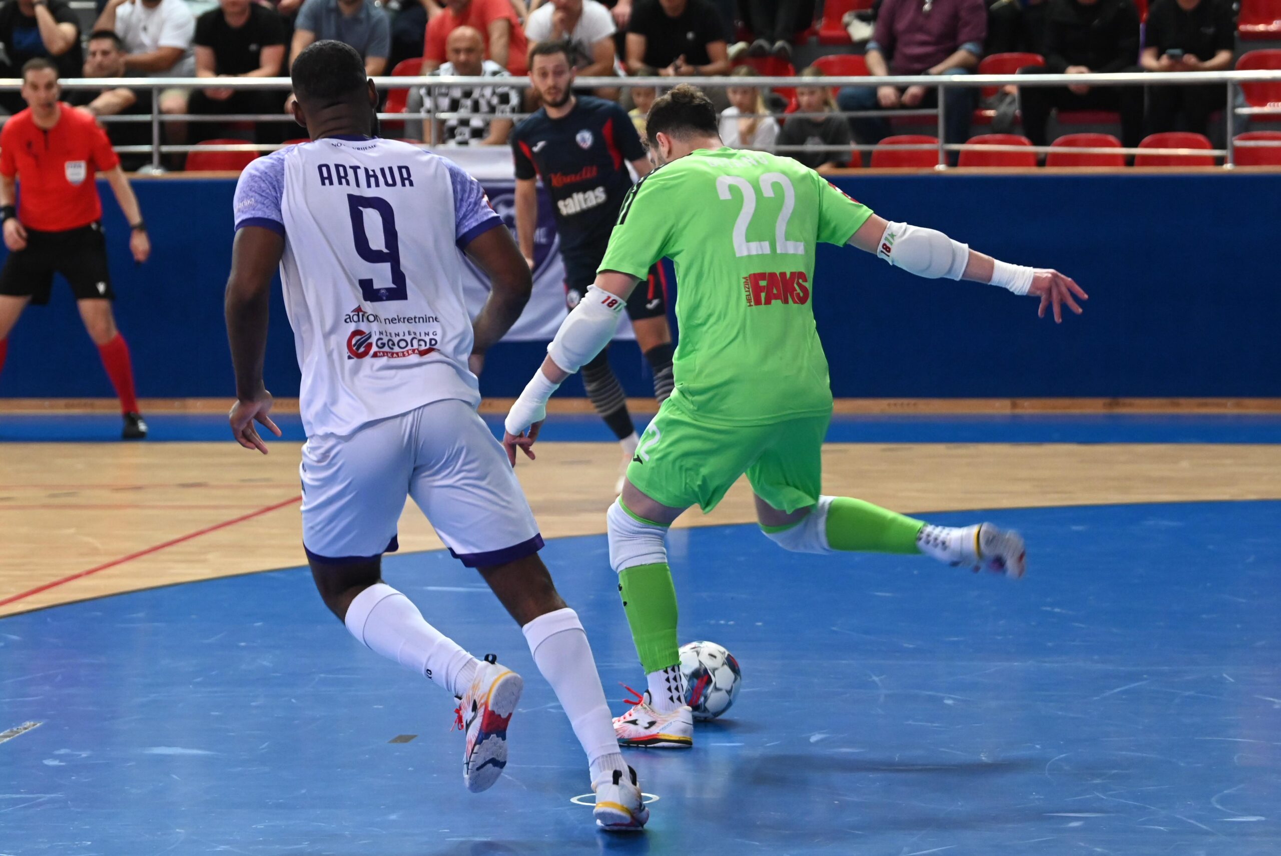 Gosti su s igračem-vratarom smanjili na 3:2 nakon samo pola minute preko Nejca Hozjana, a onda je 58 sekundi prije kraja vratar Makarana Filip Bašković uhvatio loptu i degažirao je u prazan gol preko cijelog terena za 4:2. Konačnih 4:3 postavio je Cleiton Alves, poznatiji kao Rick, kad je na semaforu ostalo 15 sekundi.