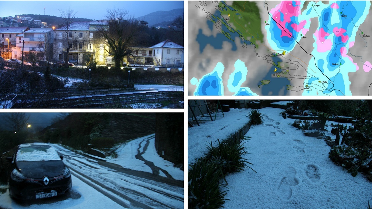 nakon toga je počelo slabiti. Tuča je zabijelila i Stobreč, a na Svilaji i Kamešnici jutros gust snijeg pada iznad 700 metara nadmorske visine.