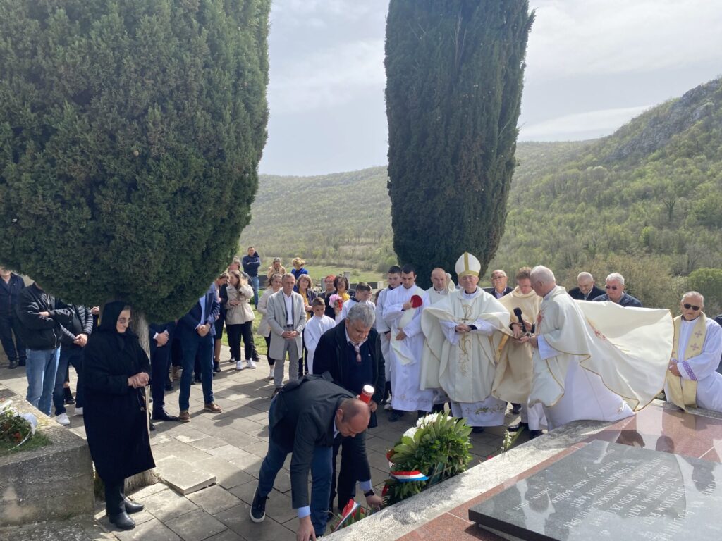 Nakon mise zadušnice, uslijedila je molitva i odrješenje, te polaganje vijenaca za sve stradale, kod spomen kosturnice na groblju svetog Martina.
