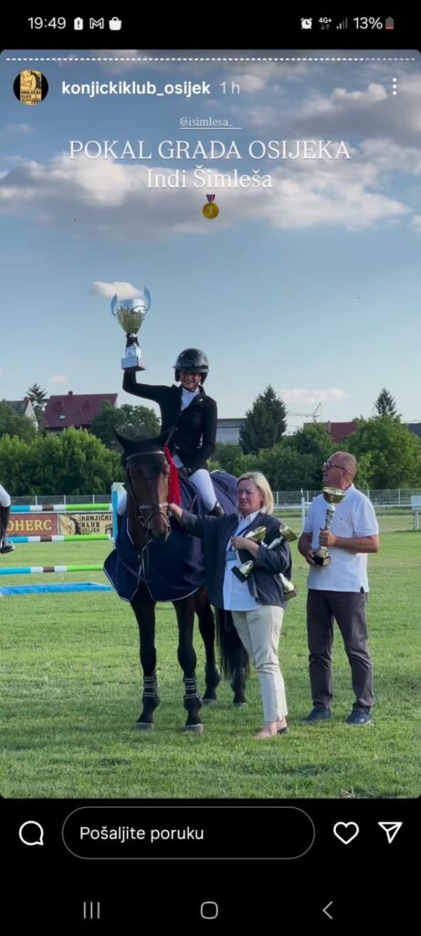 Proteklog vikenda na Prvenstvu Hrvatske u preponskom jahanju koje se održalo u Osijeku, pobjedu je odnijela obitelj Šimleša koja je već dugi niz godina aktivna u jahanju. Ante Šimleša tako je osvojio drugu nagradu u konkurenciji seniora dok je pobjedu odnijela njegova starija kćer Antea. Treće mjesto osvojila je Antina mlađa kćer Indi. I zamislite, ovo je prvi put u povijesti konjičkog sporta da je jedna obitelj osvojila prva tri mjesta.