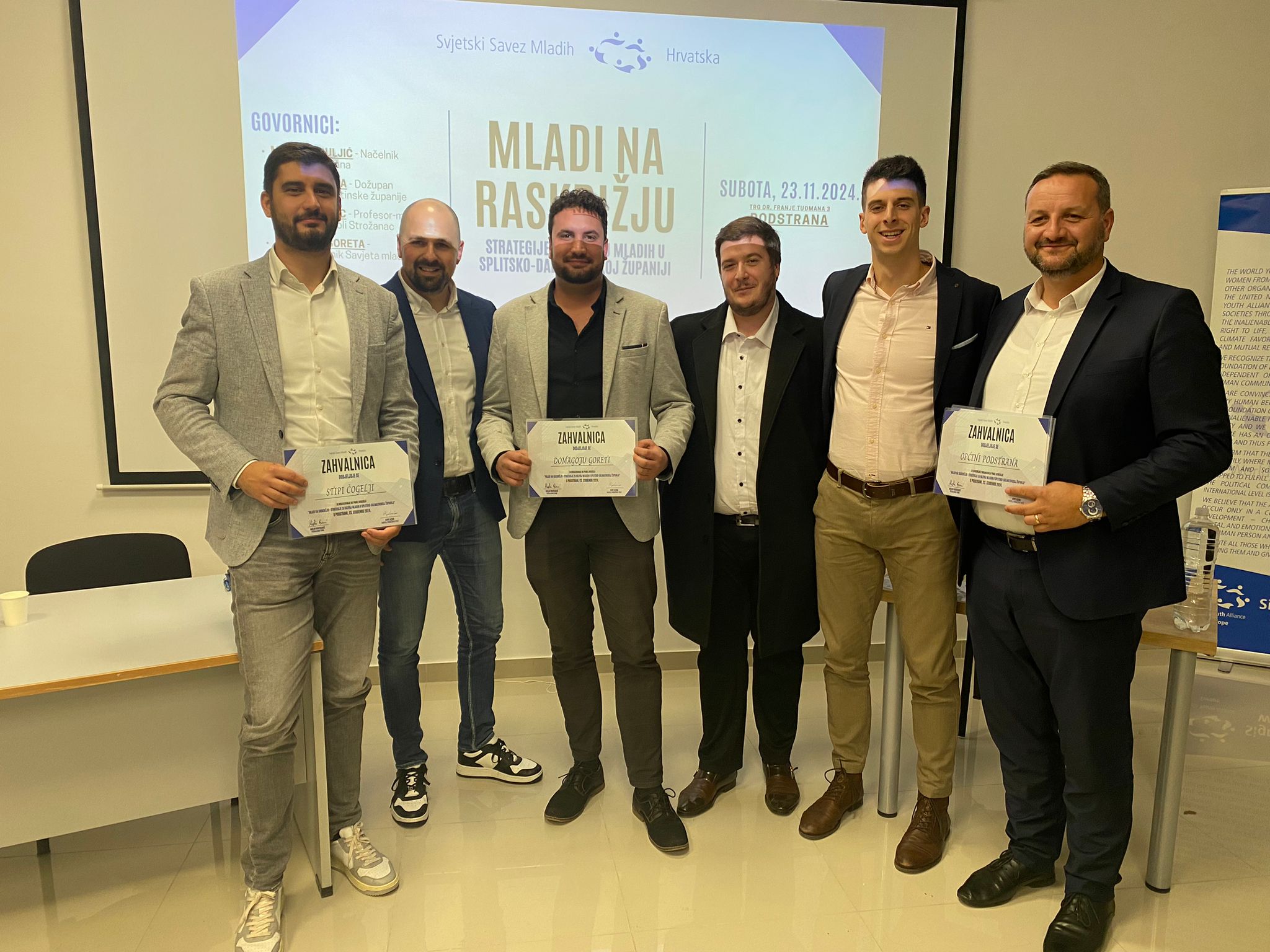 Splitska podružnica Svjetskog Saveza Mladih u suradnji s Općinom Podstrana kao domaćinom, uz podršku predsjednika i kolega iz Svjetskog Saveza Mladih Hrvatske iz Zagreba, organizirala je 23. studenog panel-diskusiju pod nazivom “Mladi na raskrižju – Strategije za razvoj mladih u Splitsko-dalmatinskoj županiji”.