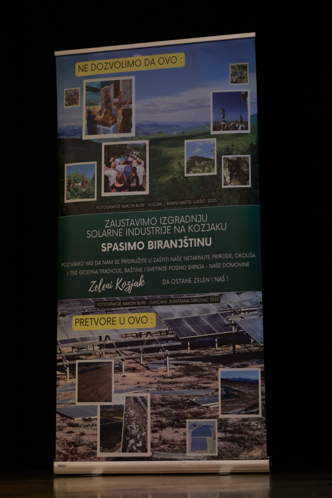Na skupu su se okupili građani, predstavnici struke i lokalnih inicijativa koji su jednoglasno izrazili protivljenje planiranoj izgradnji solarne elektrane na području Kozjaka. Organizatori su poručili kako ne pristaju na projekt koji bi trajno narušio okoliš, krajobraz i život lokalne zajednice.